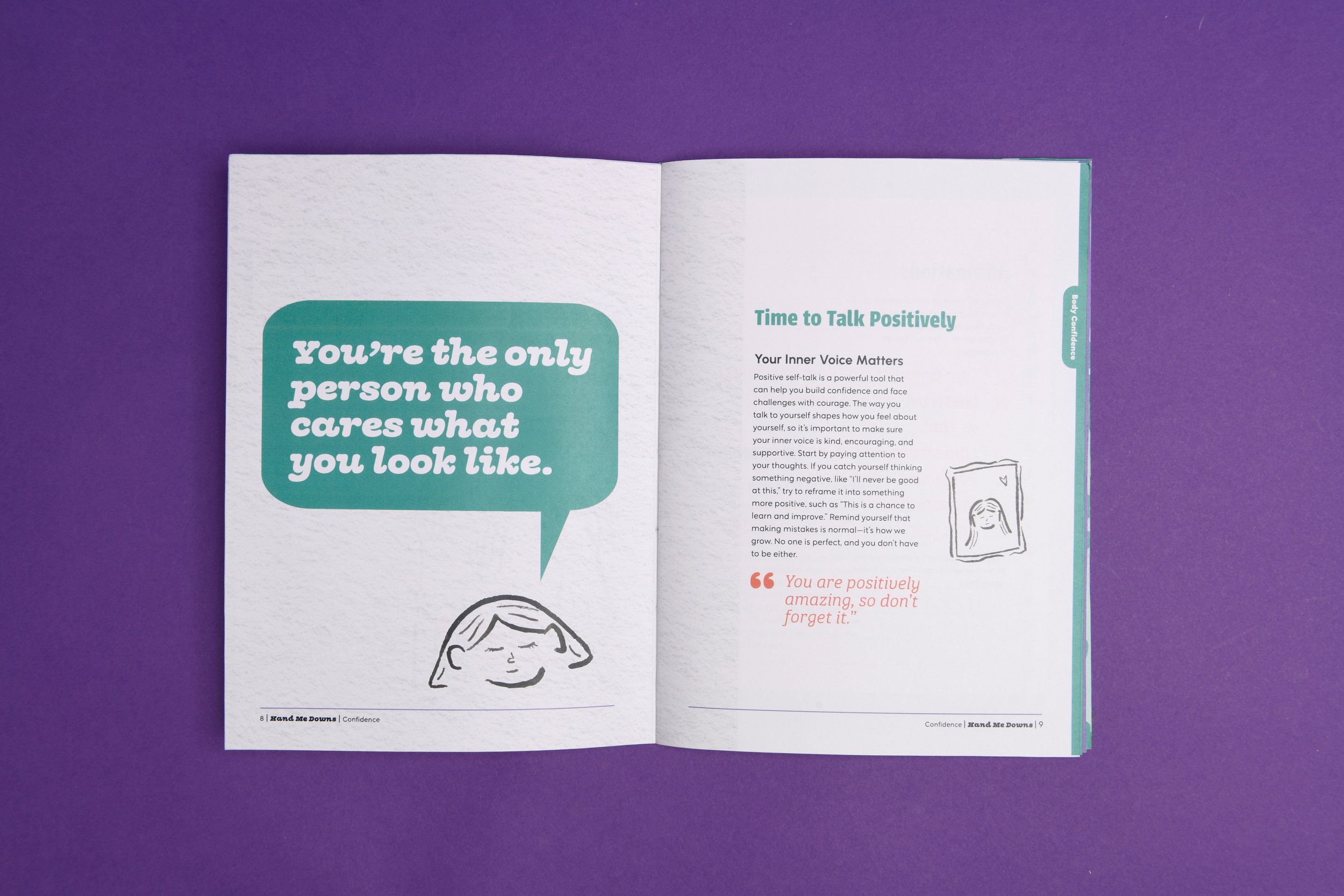Hand Me Downs was designed to feel like a meaningful conversation with an older sister. It’s small enough to carry around, personal enough to actually help. Each book tackles one topic at a time, keeping the advice focused and easy to digest. The series format was intentional, too, because good advice doesn't come all at once. It builds the same way a real sisterly relationship does.